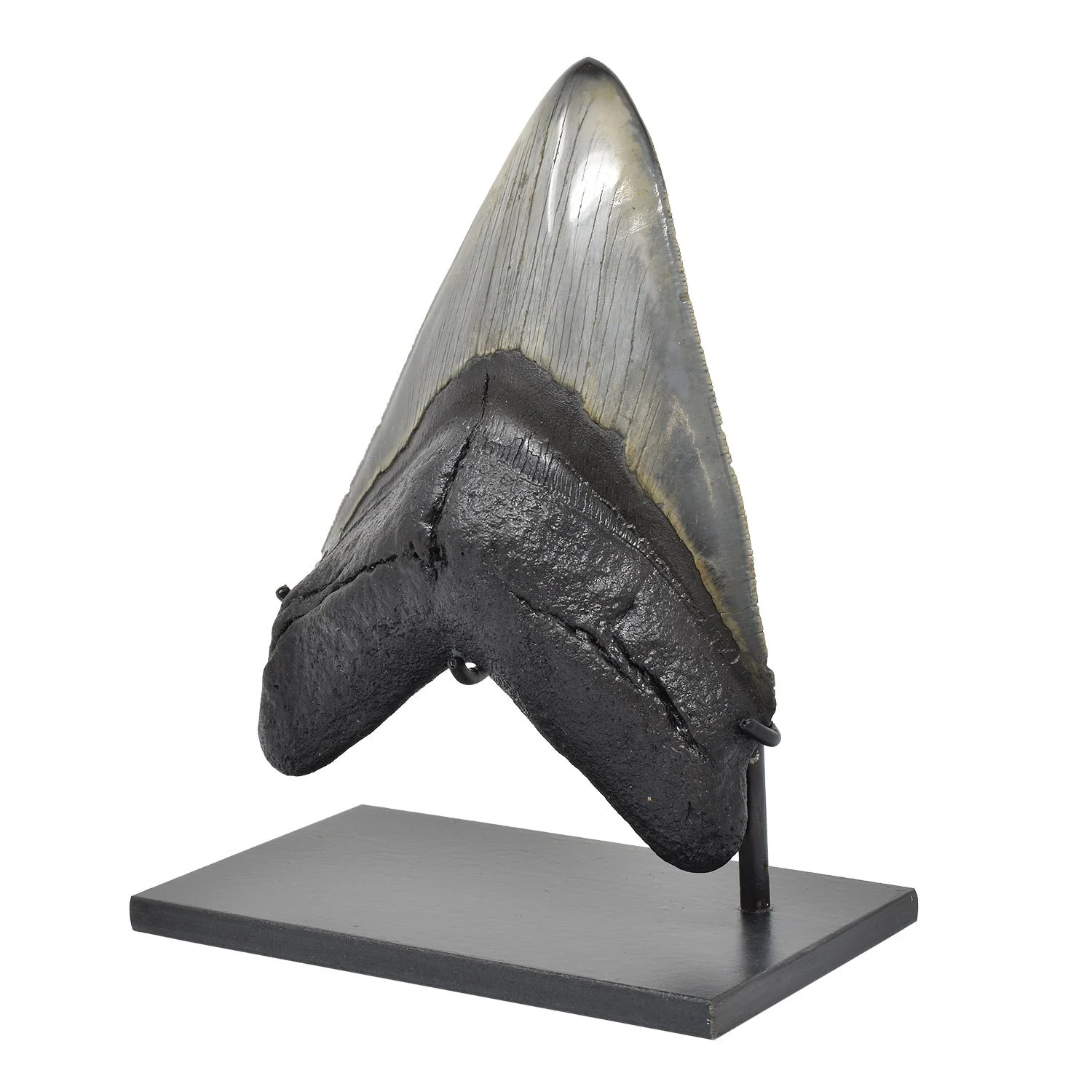 This is a genuine tooth from a Megalodon shark discovered and polished by a diver in North Carolina. Of excellent quality, it still retains much of its original serrated edges.